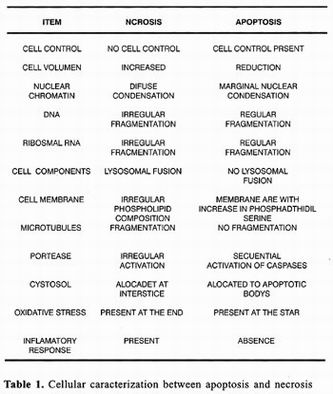 During different stages of development of complex multicellular organisms, cellular death or death and reabsorption of tissues or complete organs, occur(s). It is postulated that this type of cellular death along with cellular proliferation and differentiation form part of the processes that determine size, cellular composition, and function of different organs. This type of cellular death is termed apoptosis or programmed cellular death. It corresponds to a process in which cells that die play an active role in their death and a process that is different from incidental death by hypoxia, poisoning, or trauma (death by necrosis), in which the cell dies victim of circumstances. Nevertheless, in the latter process, the main physiologic difference between necrosis and apoptosis consists of absence of inflammatory response. In view of the fact that cellular death is controlled by genetic information, this process is also subject to the effect of mutations, which along with selective pressures of the environment constitute the raw materials of evolution.