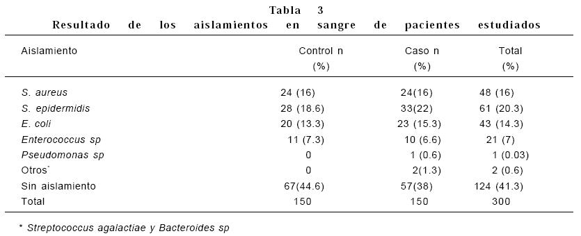Results: A total of 300 newborns were studied: 150 to controls and 150 cases. The clinical manifestations that showed statistical significance were: Abdominal distension (OR 2.5; IC 95% 17; p< 0.05); marmoreal skin (OR 6.6, IC95% 1.630,p < 0.05), bleeding (OR 8.1, IC 95% 2 18; p < 0.05); and metabolic acidosis (OR 8.1; IC 95% 518; p < 0.05). The numbers of total cells, polimorfonuclear cells and mononuclear cells in cerebrospinal fluid and percent of reticular forms in hematology results were significant. S. epidermidis was the microorganism found most frequently in the CSF.