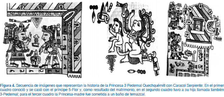 Por otra parte en la imagen, el adorno de la princesa con la serpiente emplumada es justamente la representación de poder y realeza. Para la medicina la serpiente es un símbolo mitológico de curación protección y cuidado y pudiera estar involucrada en la vigilancia del parto: cuidados inmediatos al neonato, de alimentación, arrullo y regulación de la temperatura corporal. Por último, como se mencionó anteriormente, el círculo tiene su significado de redondez, elongación y totalidad, y bien puede ser interpretado por Jurado (1996) como ''todo lo que rodea al nacimiento de un nuevo ser'' que en una sola palabra es perinatología.5