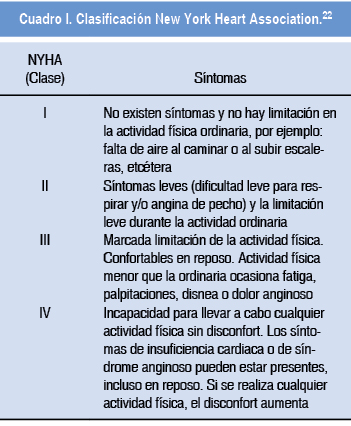 La clase funcional de la New York Heart Association (NYHA) es útil para estratificar el grado de insuficiencia cardiaca y es un enfoque simplificado que consiste en una evaluación funcional básica. En general, las mujeres con clase funcional I o II tienen un pronóstico relativamente favorable durante el embarazo, mientras que aquellas con más limitaciones funcionales significativas tienen mayor riesgo de complicaciones cardiovasculares (Cuadro I).