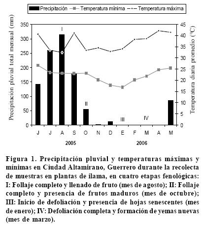 En el presente trabajo se estudió el efecto de la estacionalidad sobre las poblaciones rizosféricas, incluyendo los HMA, de plantas de ilama de tres edades en cuatro épocas del año en huertos naturales del suroeste del estado de Guerrero, México. La hipótesis que se planteó fue que en las épocas con mayor precipitación y con mayor demanda nutrimental por las plantas (épocas de llenado de fruto y presencia de frutos maduros) existirían mayores poblaciones microbianas funcionales (bacterias solubilizadoras de fosfatos y fijadoras de N y arbúsculos de hongos micorrícicos arbusculares) en comparación con las existentes en épocas de menor precipitación y menor demanda nutrimental por las plantas (épocas de defoliación completa o parcial).