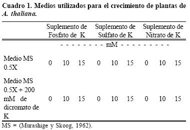 Los efectos del Cr (VI) en el crecimiento y desarrollo de la raíz de A. thaliana pueden ser estudiados en un sistema in vitro utilizando medio MSagar como substrato. OrtizCastro et al. (2006) establecieron que la concentración de 200 µM de dicromato es suficiente para inhibir el crecimiento de la raíz primaria.