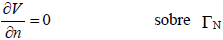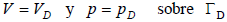 donde: V es la velocidad [L T-1]; p es la presión [M L-2] y ν es la viscosidad cinemática del aire [L2 T-1], en la que L, M y T representan, respectivamente, las dimensiones físicas longitud, masa y tiempo. Las ecuaciones de campo (1a) y (1b) corresponden a la conservación de la cantidad de movimiento y la conservación de la masa, respectivamente. Las Ecuaciones 2a y 2b representan las condiciones de frontera de Dirichlet (ΓD) y Neumann (ΓN), respectivamente, y n es el vector normal a la frontera ΓN.