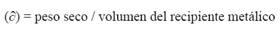 donde el volumen se calculó con base en sus dimensiones (πr2*h).