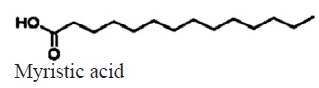 C14H28O2 | 228.37 | 12.80 | 1.5a | 1.3a | 1.8a | 2a | 0.7b | 1.3a | Saturated |