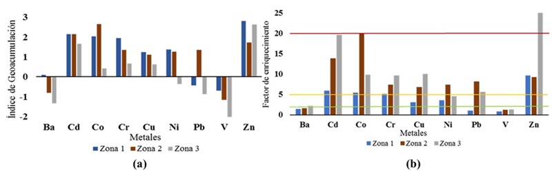 El índice de geoacumulación (Igeo) propuesto por Muller (1969, 1986) permite determinar el grado de contaminación del suelo por metales pesados, comparando las concentraciones actuales con los niveles preindustriales, se calcula con la siguiente ecuación:
