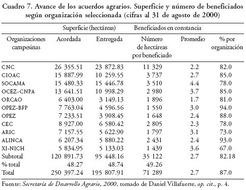 43 Daniel Villafuerte Solís, "El problema agrario en Chiapas durante el primer año del nuevo milenio", mimeo, México, 2003, p. 4.