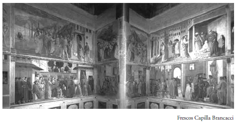 Prestaría especial atención a la representación del movimiento y a la expresión facial exaltada, a los ropajes ondulantes y al detalle de la gesticulación en los frescos sobre la vida de San Pedro, elaborados por Masaccio y Massolino entre 1425 y 1428 y concluidos por Filippo Lippi entre 1481-1482. Entre aquello que detectó durante la primera parte del siglo XV es el movimiento del ropaje, sin impacto aparente sobre el cuerpo, como si actuara en contradicción con la naturaleza. En la segunda mitad del periodo detecta el movimiento que va más en busca del deseo de satisfacción individual, una división del trabajo y la creación de la forma.