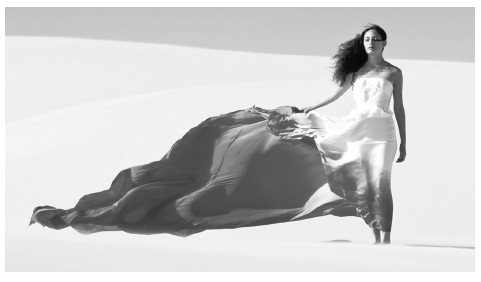 Cuerpo vestido: sobre el cuerpo esbelto cae una túnica ceñida; tanto la ninfa representada por Botticelli como la mujer de la campaña de Televisa en el siglo XXI, muestran un vestuario ligero cuya transparencia se adhiere al cuerpo para acentuar sus contornos. Una de las diferencias entre una y otra figuras es que la mujer elegida por Televisa no parece dueña de sus movimientos, ya que los elementos dinámicos de la imagen son generados desde fuera por el viento, sin nada que indique una voluntad propia de movimiento hacia delante a no ser la porción de pies que aparecen en la imagen. En esta imagen publicitaria falta cualquier causa visible que explique el por qué de la volatilidad de la vestimenta y el desplazamiento hacia delante de la mujer, que no sea el impulso del viento. En el caso de la ninfa florentina, es Céfiro quien sopla el viento hacia el resto de los personajes representados en el cuadro.