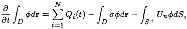 Si se integra (1) sobre D y se usan las condiciones (3), (4) y (5), se obtiene la ecuación de balance: