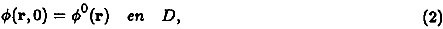 La ecuación (2) define a ɸ0 como la distribución espacial de la especie contaminante al tiempo t = 0 sobre D, es decir, ɸ0es el residuo del contaminante en la atmósfera que dejó la actividad industrial en un intervalo de tiempo pasado (por ejemplo el día anterior).