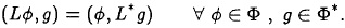 Sea H un espacio de Hilbert y L : H → H un operador lineal con dominio Φ, el operador adjunto de L es un operador lineal L* : H → H con dominio Φ* que satisface la identidad de Lagrange: