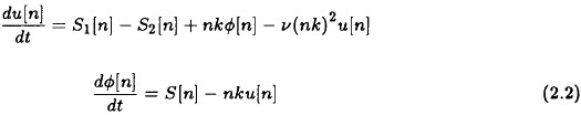 If we first consider the steady state problem, it is seen from the second equation in (2.2) that the values of u[n] are related to the corresponding term of S[n]. Having the values of u[n] one may determine φ[n] from the first equation. It is then required to calculate the two sums given in (2.3) and the dissipation term. In the non-steady case it will be required to integrate the two equations i (2.2) numerically.