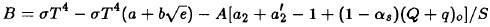 B = Lu − σT4 − σT4[0.904 − (a + b√e) − 0.005√e] − A[a2 + a'2 − 1 + (1 − αs)(Q + q)0]/S