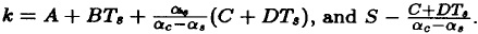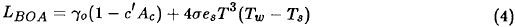 B = γ0 + 4σesT4(Tw − Ts) − A(α2 + α'2 − 1 + (1 − αs)(Q + q)0/S