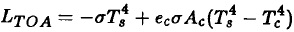 where σ is the Stefan Boltzman constant, Ts and Tc are the surface and cloud temperature respectively, ec is the cloud emisivity and Ac is the cloud amount.
