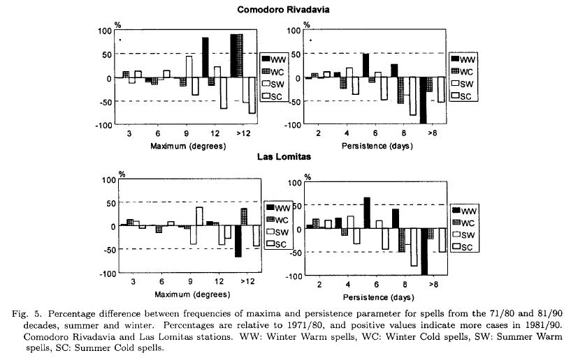 That the analysis of long-term variability of temperature should include extreme values is already well known, especially for studies of climate change. There are few published studies on some regions of the Southern Hemisphere. In the case of Australia, Plummer (1996) analyzed the changes on reliable surface data for the period 1961-93 by considering maximum and minimum temperature values, and showing the long-term variability of the daily amplitude. In Hoffmann (1997), working with Argentinean data, the interdecadal temperature variability for some stations was analyzed showing positive trends in the 10-year averaged temperatures, which are stronger in southern Argentina.