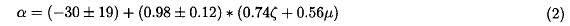 and applying the method of the multiple linear regression to the series of data shown in the Table 1, the constant values are obtained. Their values are equal to: A = 33 ± 18, B = 0.74 ± 0.13 and C = 0.56 ± 0.13.