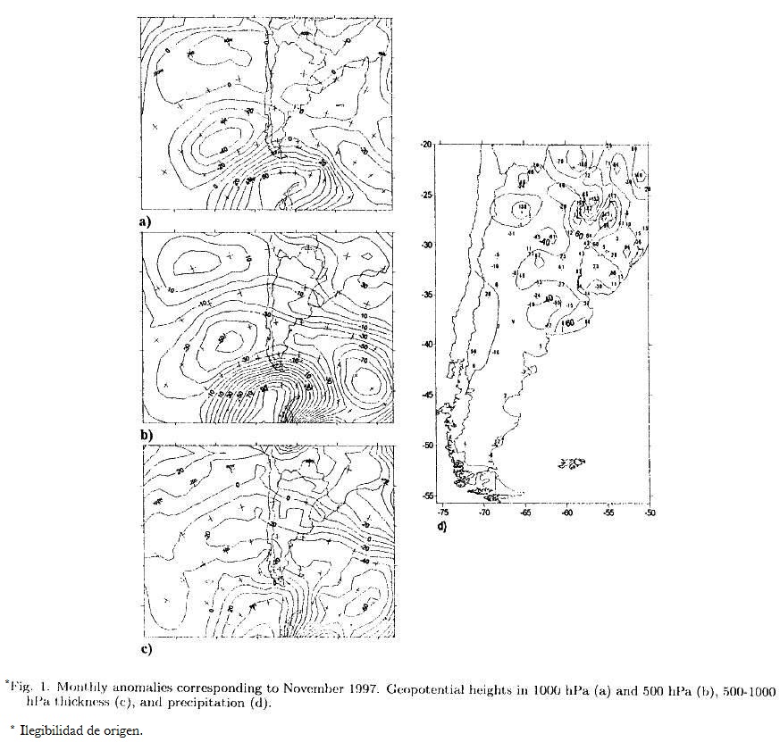 The daily precipitation values of Paraguay, Uruguay, south of Brazil and Argentina were used as well as the levels of the rivers of the River Plate basin. Then, the precipitation anomalies were determined, for the months of November 1997 to March 1998, as the difference between the monthly precipitation values and the mean precipitation of the period 1961-1990.