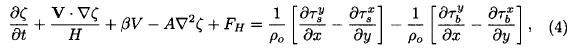 For the case when H is a constant, the term FH in Eq. (4), given by Eq. (5), is equal to zero, while τb = ρoCoV, where C0 = 1.0 x 10-6s-1 (Haltiner and Williams, 1980). Then Eq. (4) can be expressed as: