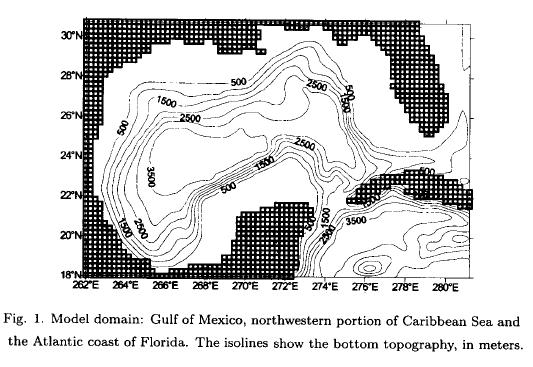 , which conserves square vorticity and kinetic energy. The model domain includes the Gulf of Mexico, the northwestern portion of the Caribbean Sea and the Atlantic coast of Florida (Figure 1).