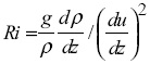 where U is the scale of the horizontal velocity. The transition of laminar homogeneous flow to the turbulence occurs when this parameter exceeds the critical value (Re>2000). For the stratified case, a flow has a density distribution in a vertical direction. At the boundary of 2-layer flows, internal waves occur. The stability of internal waves and turbulence depends on the Richardson number:
