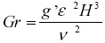 is the Grashof number, which, in turn, is the ratio of the Rayleigh number to the Prandtl number. When the buoyancy force and inertia are both of the same value, it follows that U~ε(g'H)1/2. The theoretical curve