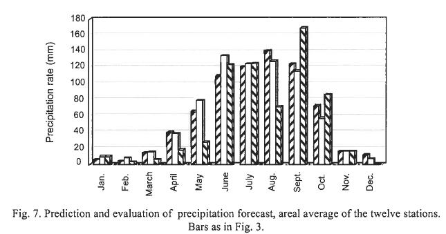 Applying the method of the ensemble of analogs, a forecast for the twelve stations (Fig. 8) was prepared. Again the forecast is at monthly and annual levels according to the producers requirements. Two things are expected; first, the forecast will be better for the first semester, second it is expected that a second one will be produced at the end of June that can be used for the second semester.