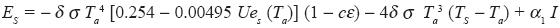 , the StefanBoltzmann constant; Ta , the surface air temperature; U, the surface air relative humidity; eSTα, the saturation vapor pressure at the surface air temperature in hPa; ε, the fractional amount of cloudiness; and c=0.65, a cloud cover coefficient.