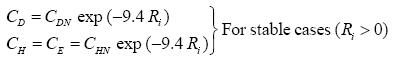 Where CDN =2.5x103 and CHN = 1.2x103 are the drag coefficient for momentum and sensible heat for the neutral case, respectively, and R1 is the bulk Richardson number given by: