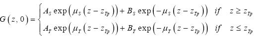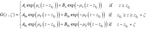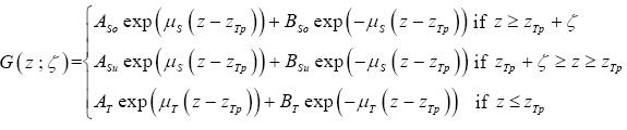 This function declines from the tropopause height zTp to both sides exponentially. Relative to the solution of the original problem this means that the influence of an error at the tropopause remains constant down to the lower boundary whereas it declines very fast in the upward direction.