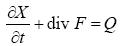 where F is the flux density vector of this quantity and Q is its net chemical production per volume unit. With u = X/Mair denoting the mixing ratio of this tracer, Mair being the air concentration,