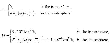 K, L and M are the space dependent exchange coefficients, i.e. the "eddy diffusion coefficients", and satisfy the condition