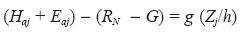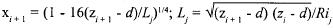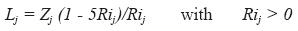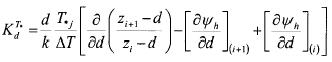 is the value of the relevant entity (temperature or vapor pressure) on adjacent levels and Zj the mean geometric height:(