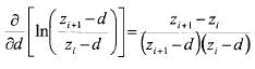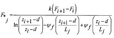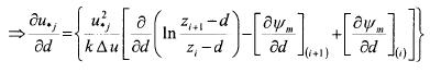 where the subscript i stands for the ith level of wind speed. The equation is differentiated with respect to u*, d and z0 and equated to zero. This expression is essentially a linear function of d that can be solved numerically by simple bisection to within ± 1 mm of the solution.
