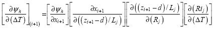 To F = T (temperature) equation 13, and ΔT = Ti+1 Ti, result: