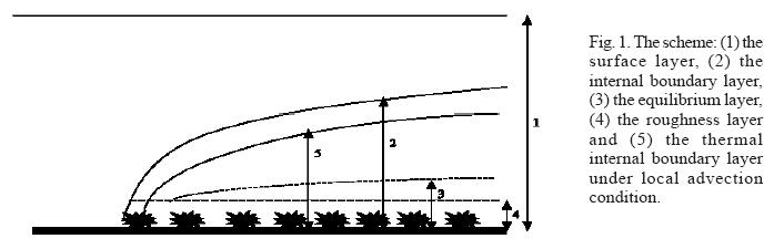 The fluxes of sensible and latent heat for several heights were computed applying the aerodynamic method. The residual in the energy balance equation was used as a criterion to determine the internal equilibrium layer.