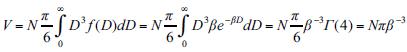 Another interesting question refers to the volume Vof liquid water represented by Z0. Considering that drops follow the MP distribution, the volume of liquid water per unit of volume of air is the integral of f (D) multiplied by the volume of each drop, that is,