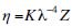 where K is a constant that depends on the units used. In fact, in radar meteorology, the useful variable is the equivalent reflectivity factor Ze, which is the reflectivity of a spherical liquid hydrometeor satisfying Rayleigh's approximation and backscattering a signal of the same power as that which is effectively backscattered. Indeed, the nature of the hydrometeors inside the volume of resolution is in general not known. In this context, η = Kλ4Ze. For practical reasons, Ze is symbolized by Z and called reflectivity factor or simply reflectivity for the purposes of brevity (and perhaps because the term factor is not an appropriate name, instead of coefficient).