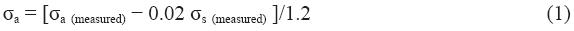 Where: σa (measured) is the absorption coefficient measured with the PSAP and σs (measured) is the scattering coefficient measured with the nephelometer.