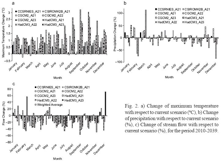 It was taken into account the expected changes in maximum temperature and precipitation, due to the fact that the model that was used to calculate the stream flows, only considered these two variables (Ospina, 2009; Ospina, et al., 2009a).
