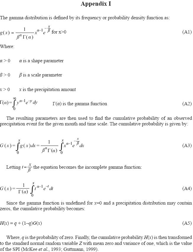 The analysis of drought events may incorporate different indices and methodologies that consider meteorological and hydrological variables such as rainfall, soil moisture, evapotranspiration, ground and surface water levels. We have chosen the Standardized Precipitation Index (McKee et al., 1993) which has been used as a tool to identify and assess drought events in many countries (Paulo et al., 2003; VicenteSerrano et al., 2004). The main advantage of this drought analysis technique is its simplicity and temporal flexibility, because it only uses one parameter: the precipitation data over time.