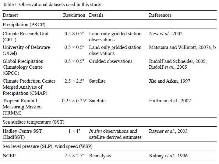 Xie P. and P. Arkin, 1997. Global precipitation: A 17 year monthly analysis based on gauge observations, satellite estimates, and numerical model outputs. Bull. Amer. Meteor. Soc. 78, 2539-2558. [ Links ]