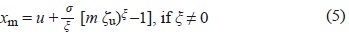 Because the approximation given by Eq. (1) only takes into account the maximum or minimum values of a time series, many data are omitted. In contrast, the approximation of peaks over threshold (POT) analyzes the values that exceed the threshold value, and the data above this value can be asymptotically approximated by the GPD: