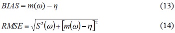 Let η be a quantile to be estimated; coi, i = 1,..., ns the estimates obtained from each sample and ns the number of samples used in the experiment. Then, the bias and root mean squared error (RMSE) of the estimator m may be computed as: