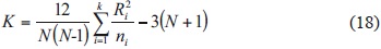 Calculation of the K statistic from the Krus-kal-Wallis test involves the rank of observations once the k samples or groups have been mixed. K is defined by:
