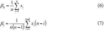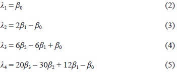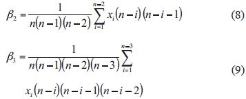 For a sorted sample x1, x2,... , xn in decreasing order, the values of the probability weighted moments β0, β1, β2 and β1 can be estimated by: