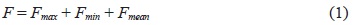 Fmax stands for the assigned point score for Tmax and likewise. The formula given by Eq. (1) indicates that a perfect (missed) average daily total forecast score would have a value of 6 (0). The normalized percent average daily total forecast score (F%) is defined as
