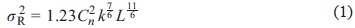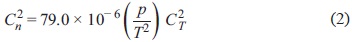 where C2n is the refractive index structure coefficient, k is the wavenumber and L is the propagation path length. The wavelength and path length are measured in the laboratory and C2n is thereafter inferred.
