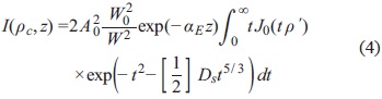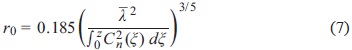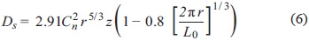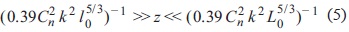 with r being the separation between the inner and outer scales, z the propagation path length, and